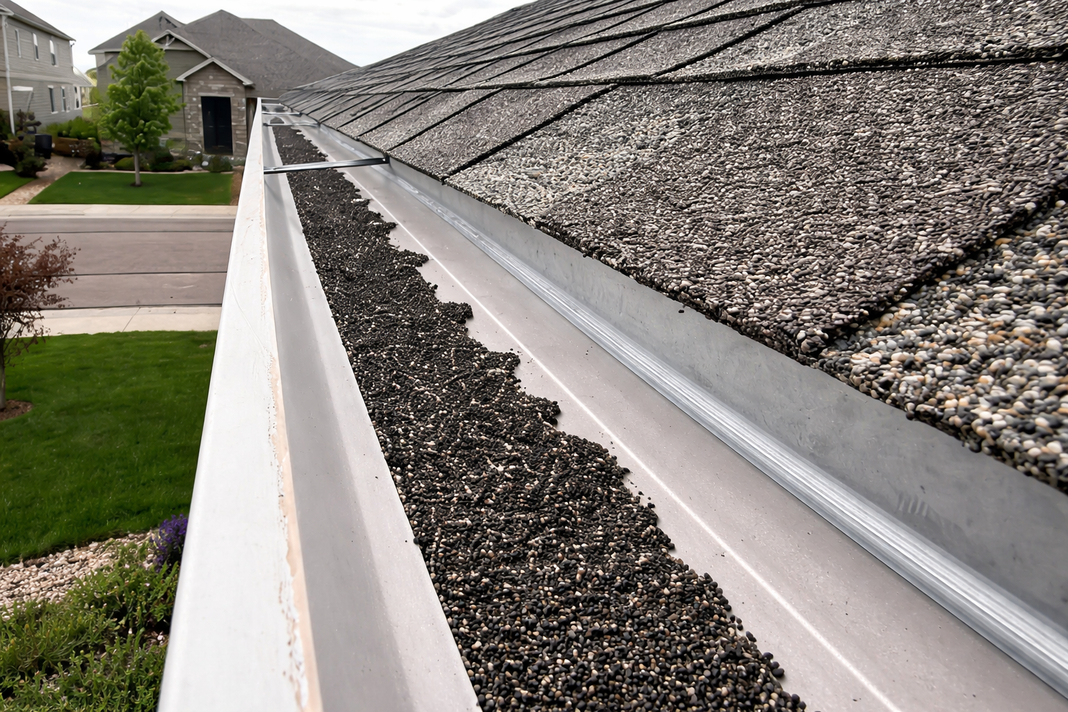 ⚠️Granules in Your Gutters — Those dark, sand-like granules protect your shingles from UV damage. When they wash into gutters in large quantities, your shingles are losing their protective layer.