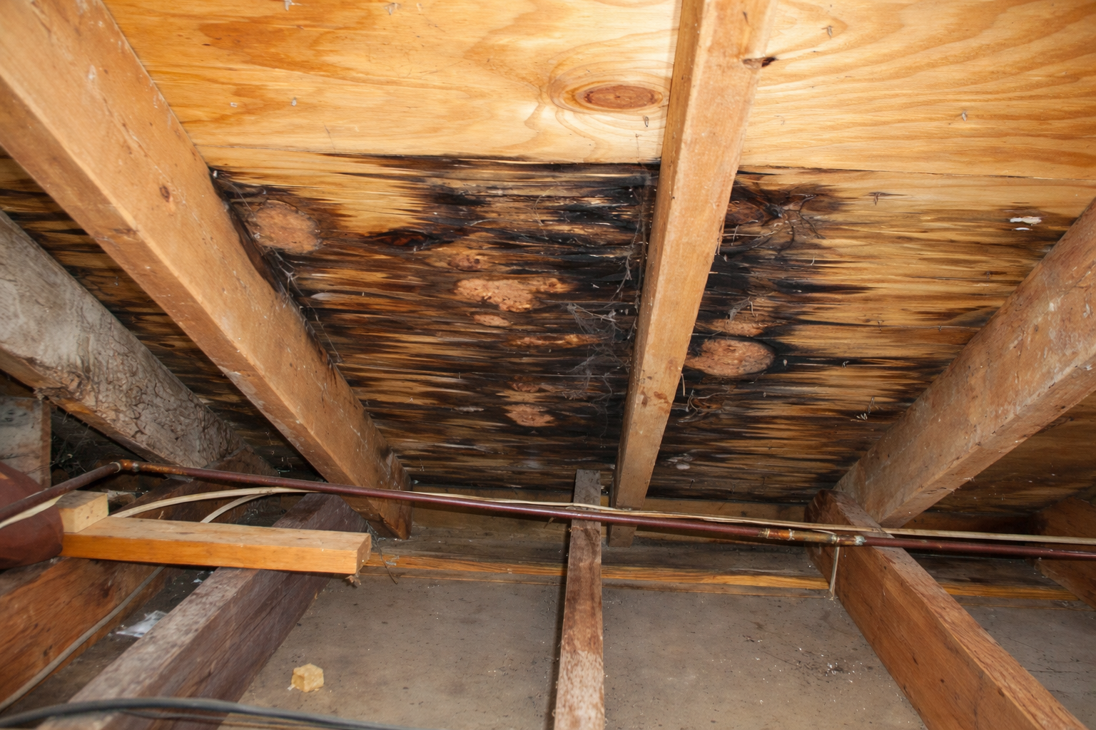 ⚠️Water Stains or Leaks in the Attic — Staining on rafters or ceiling drywall means moisture is getting through. In Ogden's winters, even a small leak can turn into serious ice-dam damage.